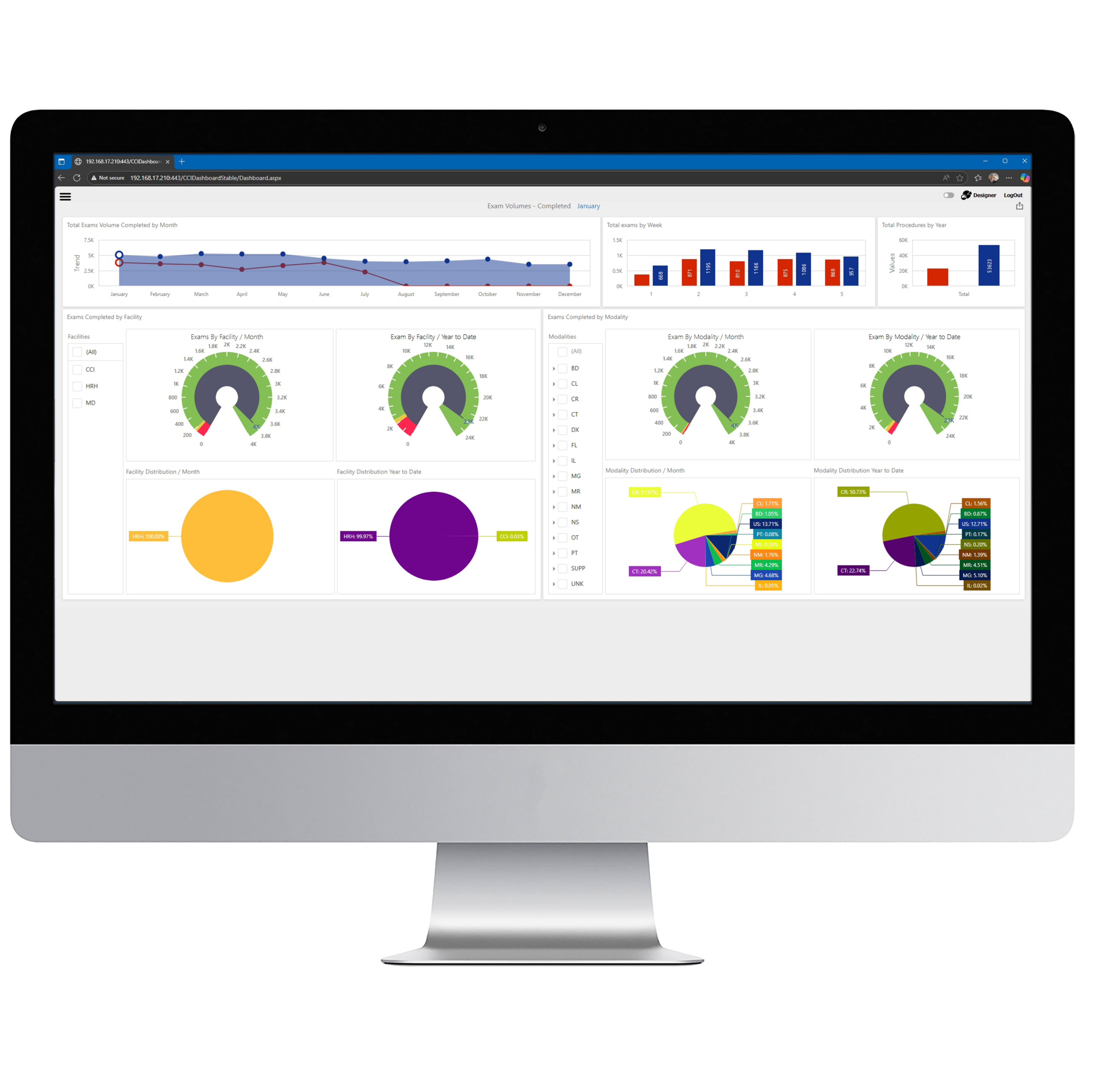 Q/ris Analytics combines a powerful Dashboard Designer and Report Writer, giving you the flexibility to build custom dashboards and reports across every stage of the radiology workflow. Track key metrics such as volume, throughput, turnaround times, and productivity — and uncover opportunities to optimize performance across your facilities.